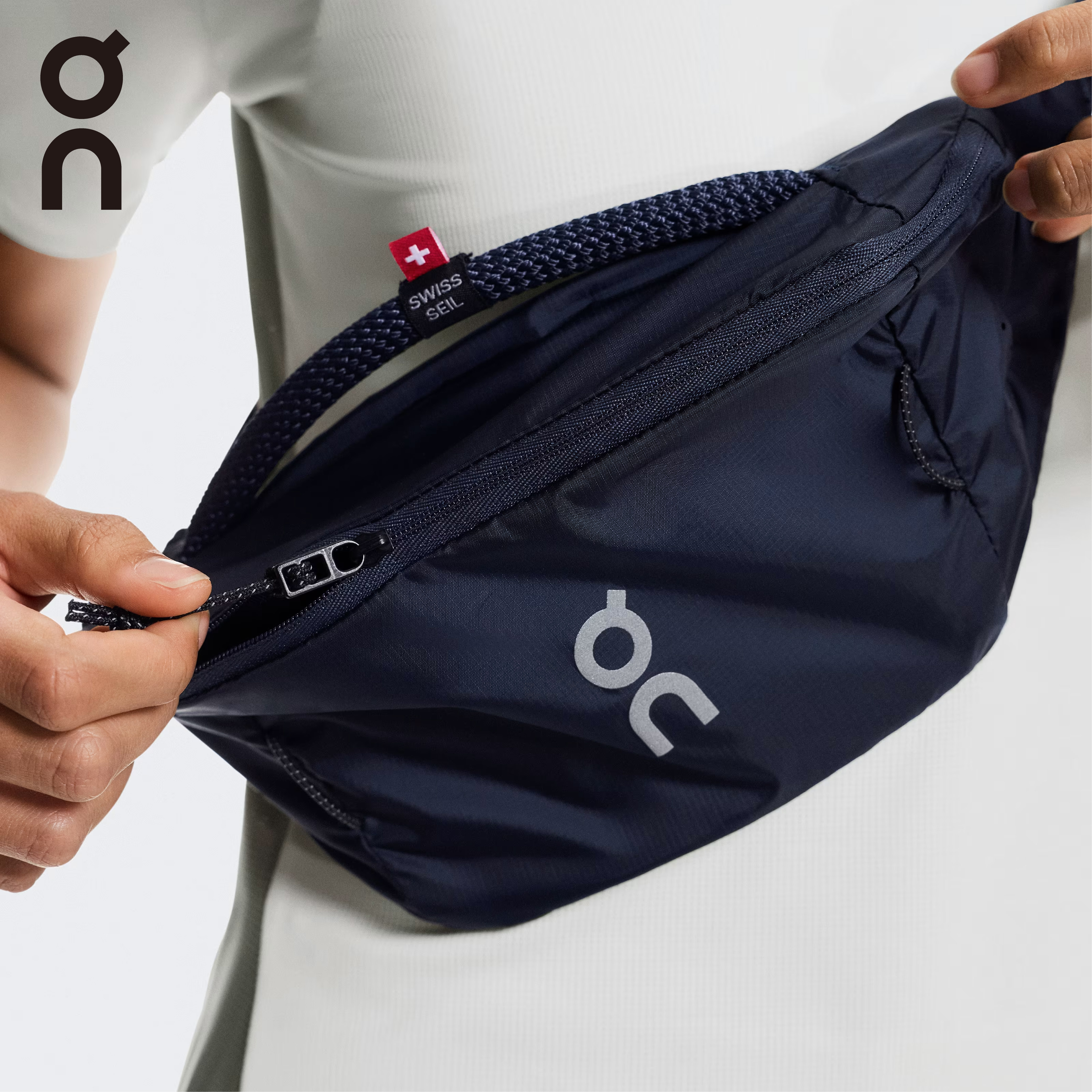 ウエストに巻いたり、クロスボディバッグとしても使えます。