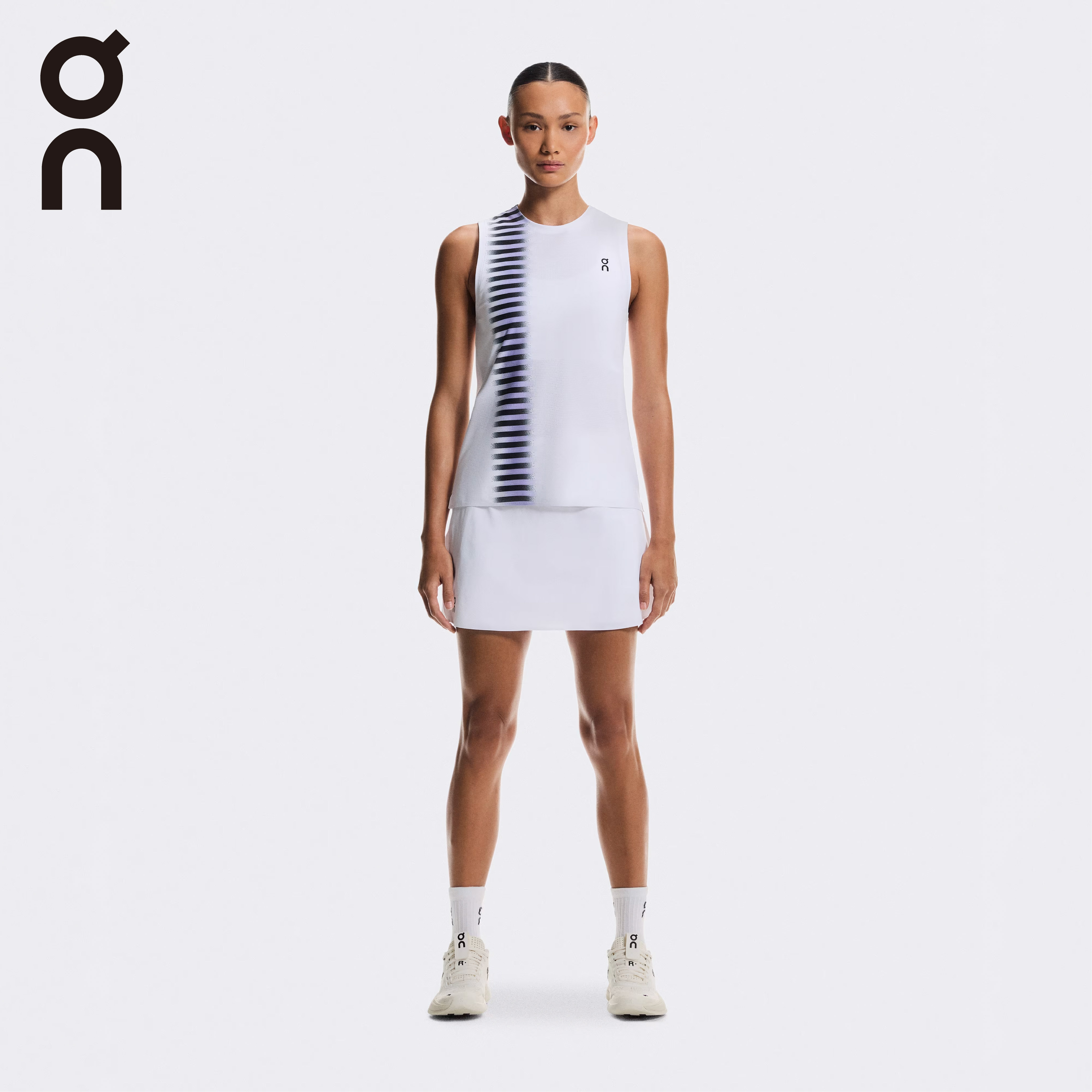 コートタンク エッジ:イガ・シフィオンテク選手の自信に満ちたプレースタイルから着想を得た、グラフィックプリントが目を引くテニス用タンクトップ。On DryTec™ファブリックが汗をすばやく吸収し、体を涼しくドライに保ちます。
