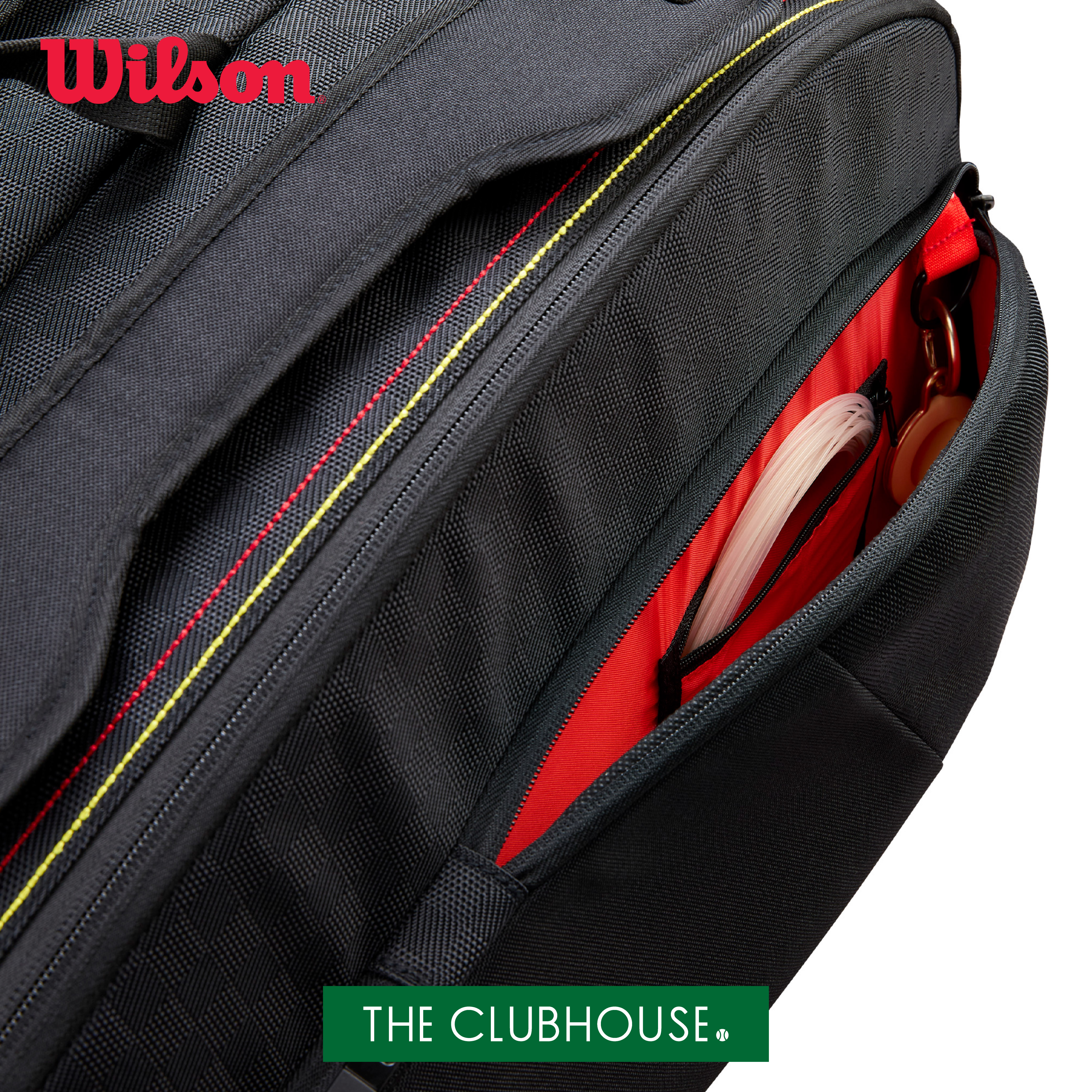 メインポケットは2室構造で、ラケットを最大12本まで収納可能。両サイドには小物を整理しやすい大型アウトポケットを配置し、通気性に配慮したジッパー付きシューズポケットも有。無駄を削ぎ落としたブラックベースのデザインに、レッドロゴとラインが映える、PRO STAFFのDNAを感じさせる佇まい。機能性と存在感を両立した、コートでも移動中でも映えるラケットバッグ。